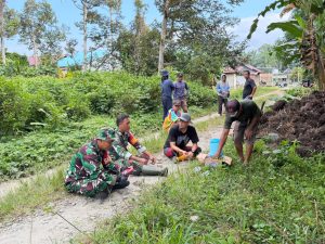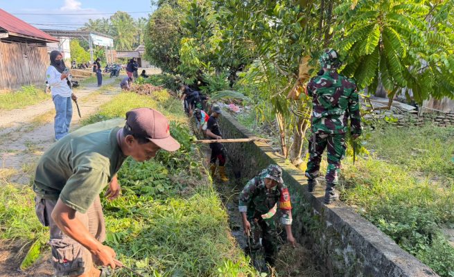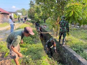 Cegah Banjir, Babinsa Koramil Wotu dan Warga Gotong Royong Bersihkan Saluran Air