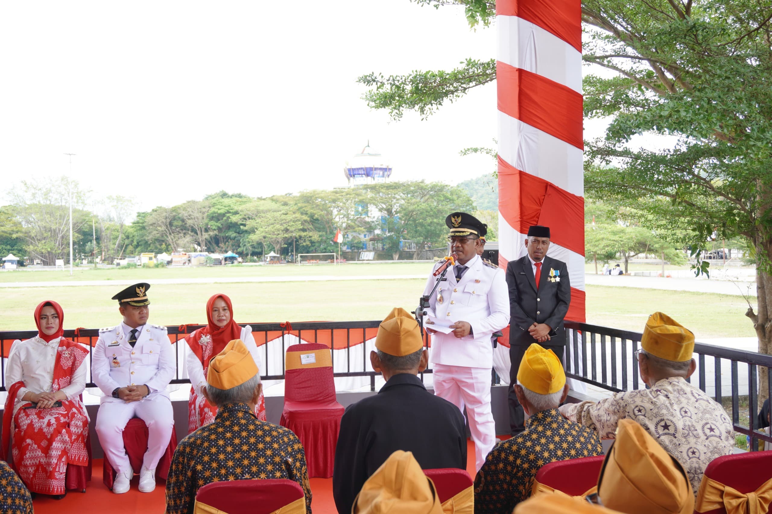 Hadir dalam upacara Peringatan Detik-detik Proklamasi Kemerdekaan RI yang Ke-80, Bupati Luwu, H. Patahudding, Wakil Bupati Luwu, Muh. Dhevy Bijak Pawindu, Ketua DPRD Kabupaten Luwu, Ahmad Gazali, Ketua TP-PKK Kabupaten Luwu, Hj. Kurniah Patahudding, Ketua Bidang I TP-PKK, Nilasari Dhevy Bijak, unsur Forkopimda, para Kepala OPD, dan legiun Veteran perintis kemerdekaan Kabupaten Luwu.
