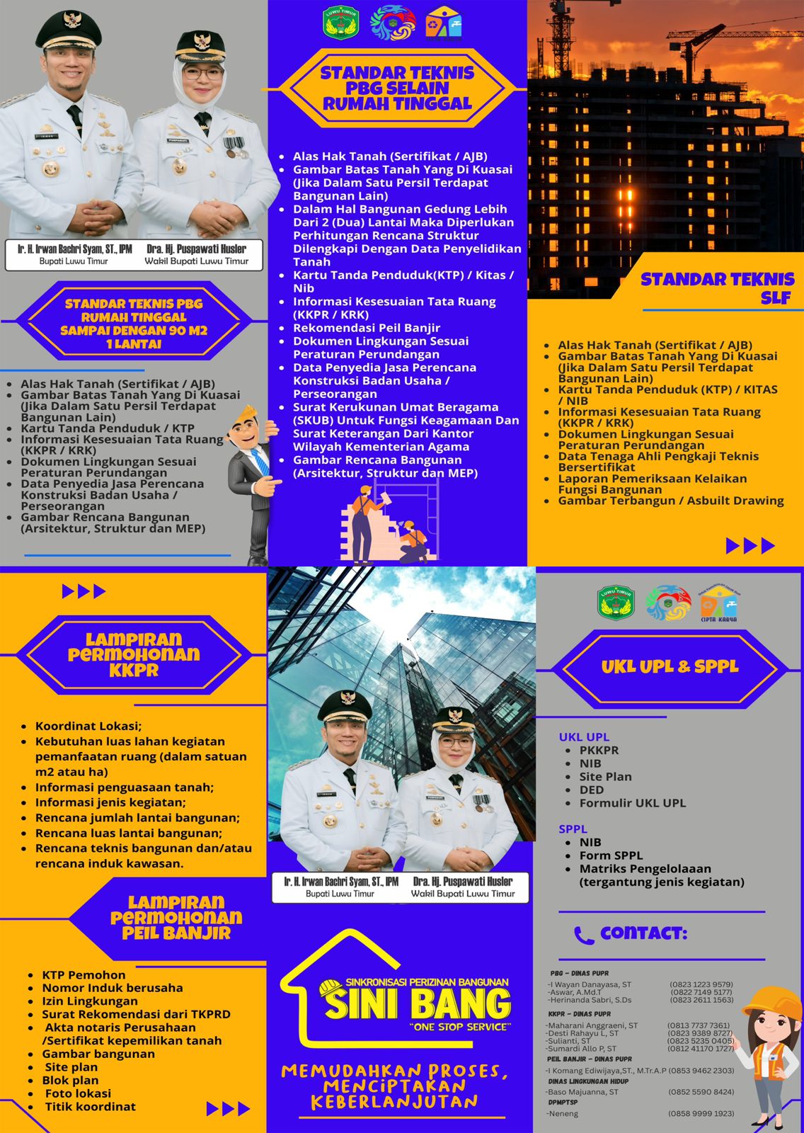 Masyarakat yang ingin mengurus perizinan bangunan dapat langsung menghubungi Dinas PUPR Luwu Timur atau konsultan teknis yang telah ditunjuk.