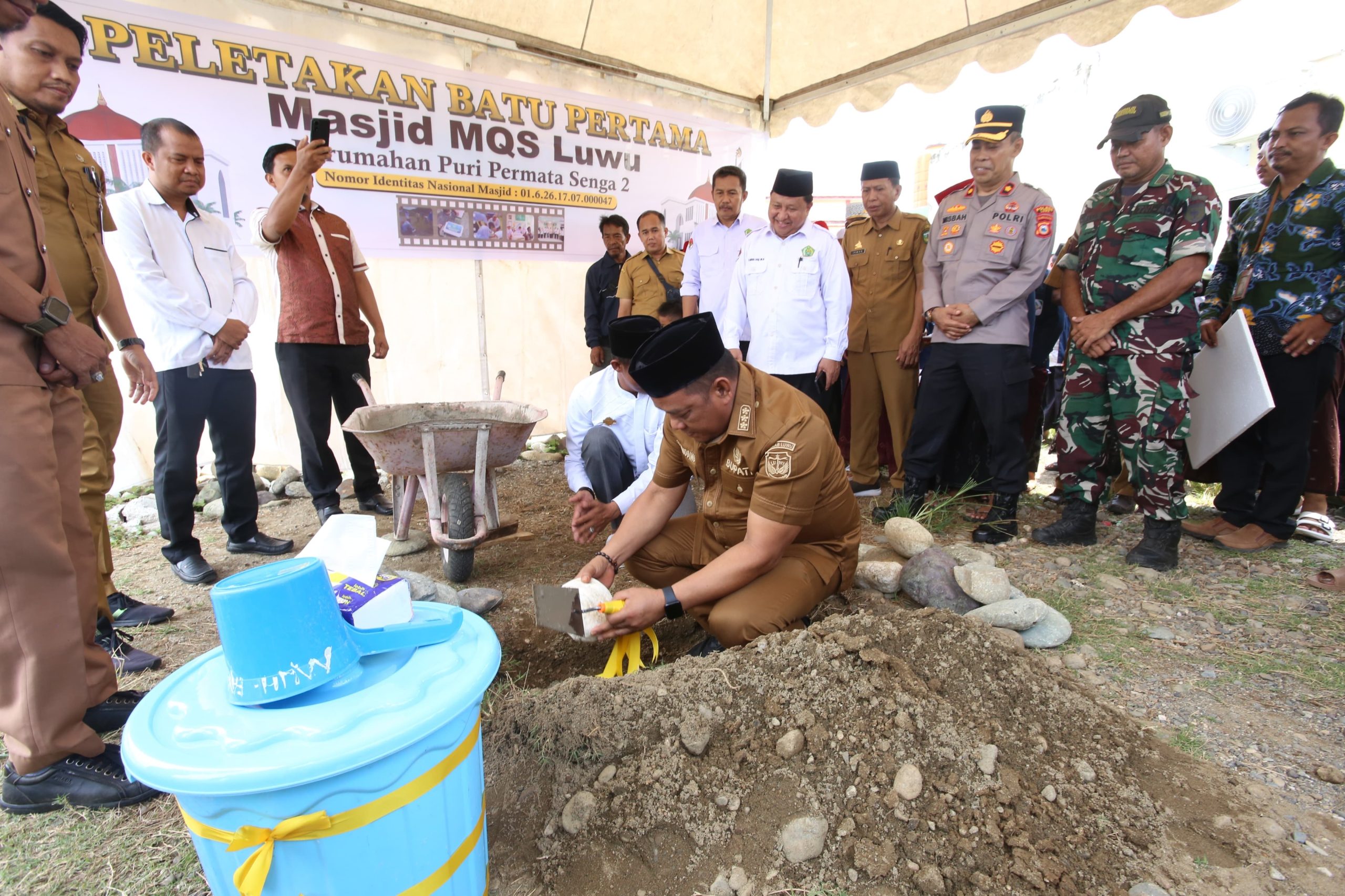 LUWU, hnmindonesia.com,-Pembangunan Masjid Ma’had Qori Sulawesi (MQS) Luwu resmi dimulai setelah Bupati Luwu, H. Patahudding, melakukan peletakan batu pertama di Perumahan Puri Permata Senga 2, Jalan Batu Murrung, Kelurahan Senga, Kecamatan Belopa, Selasa (21/10/2025).