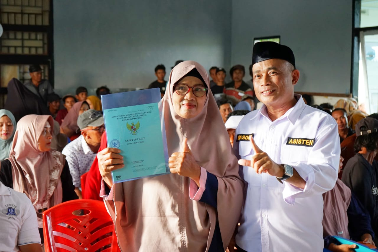 “Terima kasih karena telah memperjuangkan hak masyarakat kami. Untuk warga, jagalah sertifikat yang diterima hari ini, dan bagi yang belum menyelesaikan PBB tahun 2023 hingga 2025 agar segera menunaikannya,” imbau Sahril.