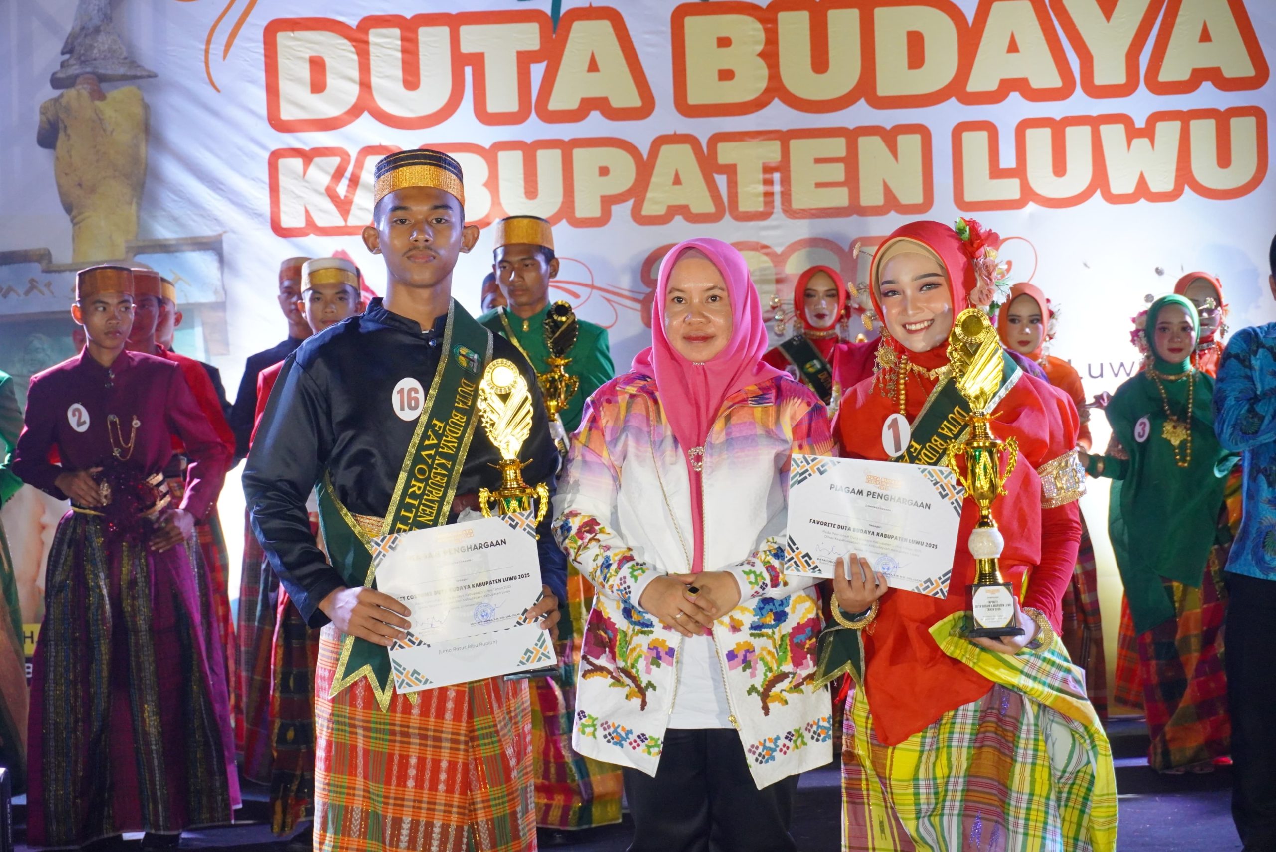 Kategori pemenang diumumkan, di antaranya Best Talent oleh Chantika Permatasari dan Daffa Adhyaksa, Best Performance oleh Naysila Asyfa Mus, serta Best Speaker oleh De Syatir Al Mannan. Untuk hasil utama, Daffa Adhyaksa (SMAN 11 Luwu) dan Chantika Permatasari (SMAN 1 Luwu) terpilih sebagai Juara 1 Putra-Putri Duta Budaya Luwu 2025.