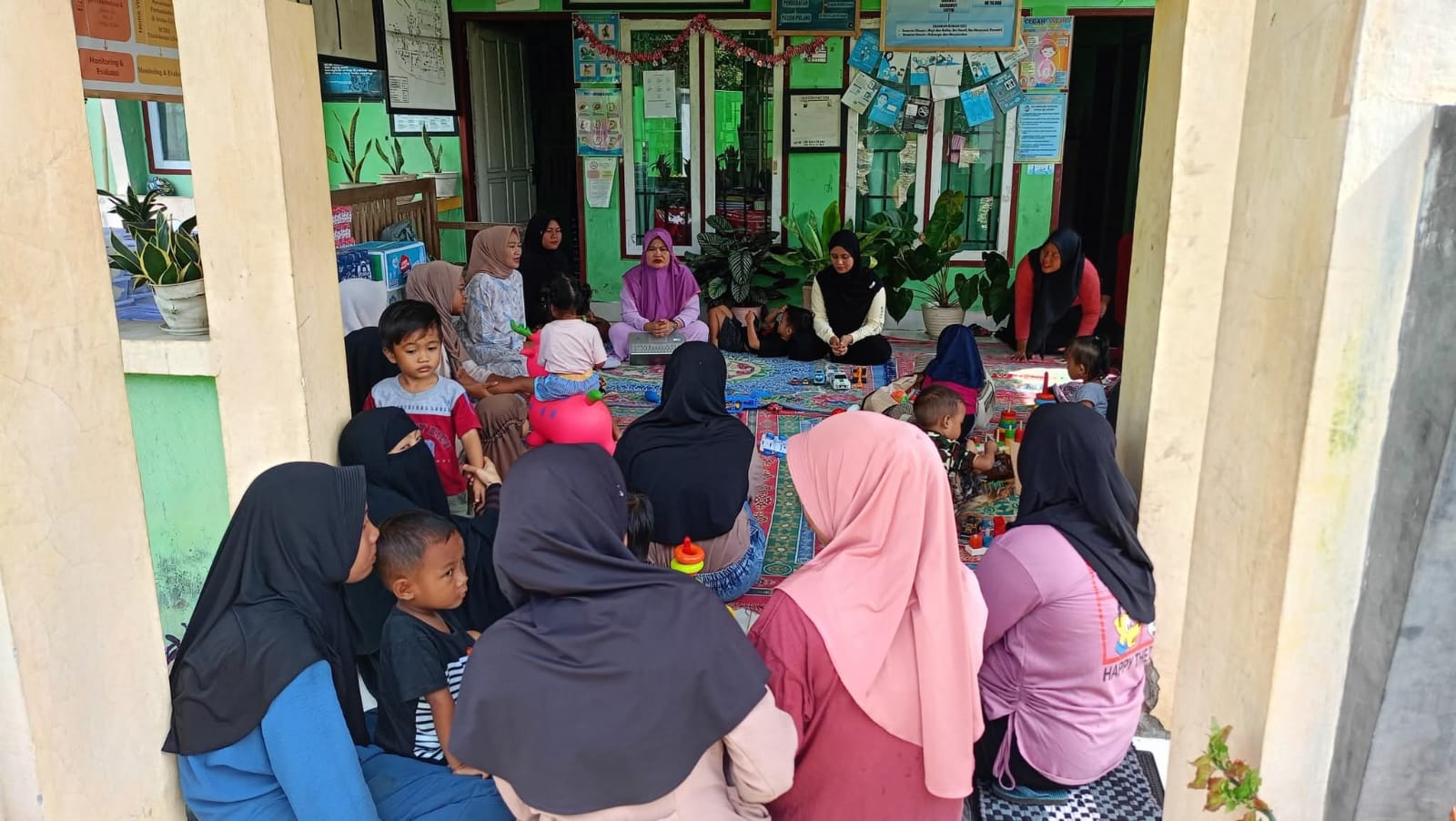 Meskipun digelar pada hari libur, para kader dan petugas kesehatan tetap hadir memberikan pelayanan kepada masyarakat. Orang tua tampak antusias membawa anak-anak mereka untuk menerima makanan tambahan yang telah disiapkan.