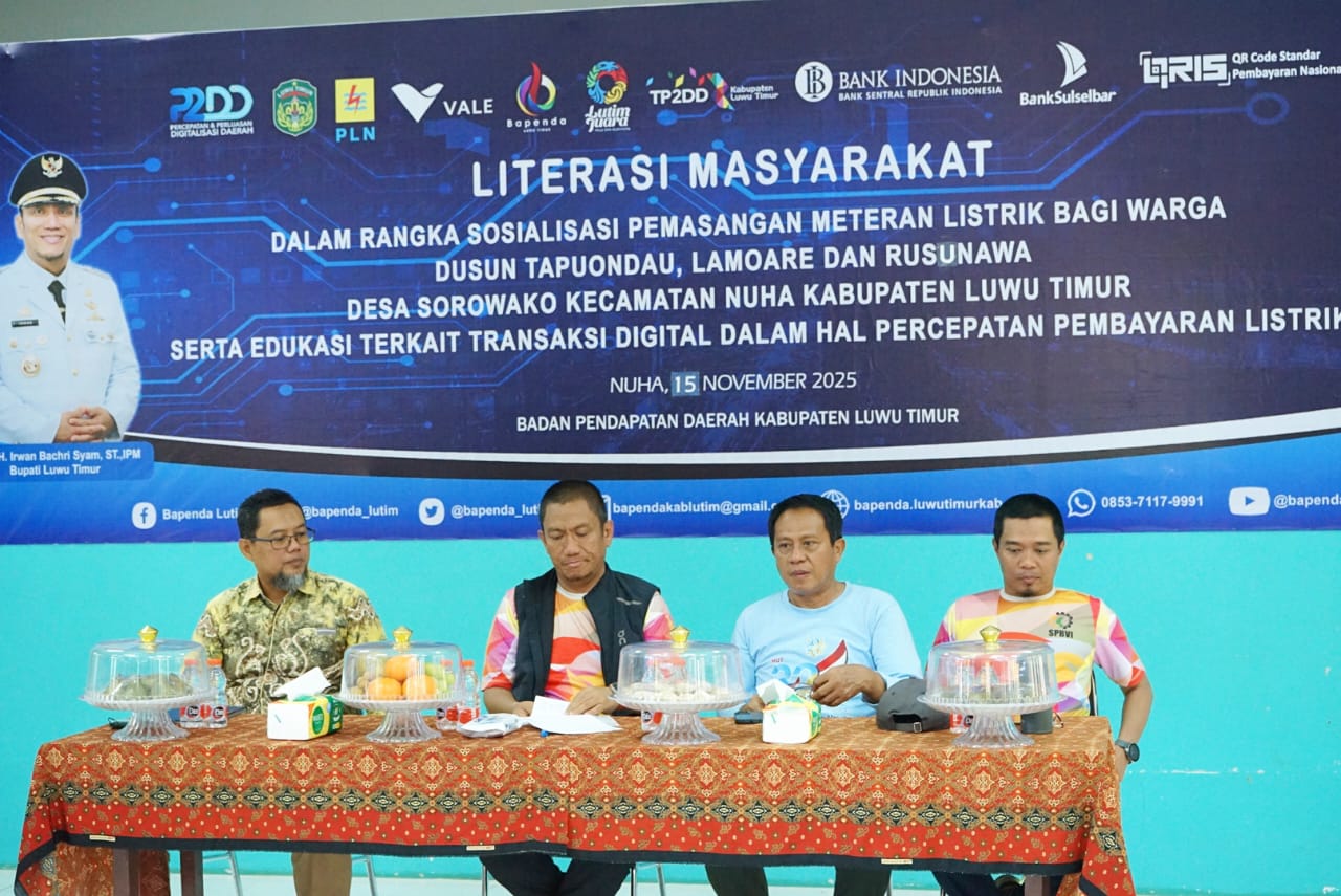 LUWU TIMUR, hnmindonesia.com, – Upaya pemerataan layanan energi terus diperkuat Pemerintah Kabupaten Luwu Timur. Hal ini kembali ditegaskan saat Bupati Luwu Timur, Irwan Bachri Syam, menghadiri kegiatan sosialisasi pemasangan meteran listrik bagi warga Dusun Tapuondau, Lamoare, dan Rusunawa di Desa Sorowako, Kecamatan Nuha. Agenda tersebut berlangsung di Matano Player pada Sabtu (15/11/2025).