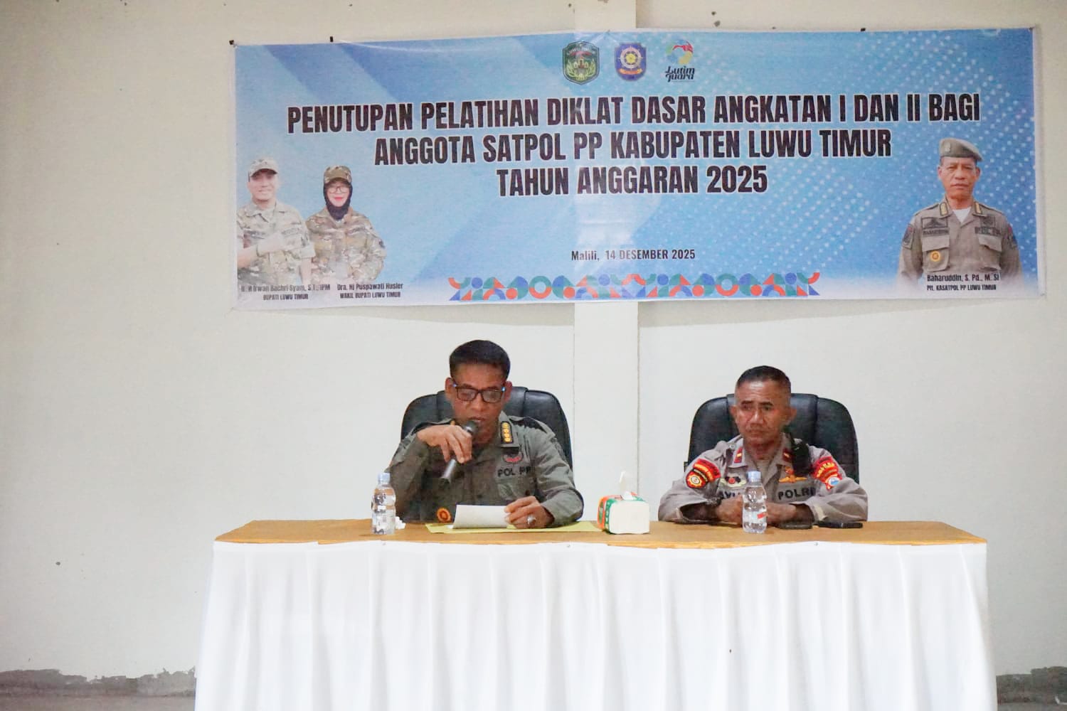 LUWU TIMUR, hnmindonesia.com, – Pelaksana Tugas (Plt) Kepala Satuan Polisi Pamong Praja (Satpol PP) Kabupaten Luwu Timur, Baharuddin, S.Pd., M.Si, mewakili Bupati Luwu Timur, secara resmi menutup kegiatan Pendidikan Dasar (Diksar) Satpol PP Luwu Timur, Ahad (14/12/2025), di Hotel Sikumbang, Kecamatan Tomoni.