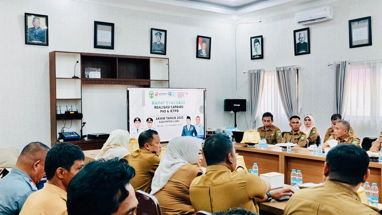 LUWU, hnmindonesia.com, – Pemerintah Kabupaten Luwu menggelar Rapat Evaluasi Realisasi Pendapatan Asli Daerah (PAD) dan Indeks Elektronifikasi Transaksi Pemerintah Daerah (IETPD) Tahun Anggaran 2025. Kegiatan ini berlangsung di Lounge Kantor Bupati Luwu, Senin (29/12/2025).