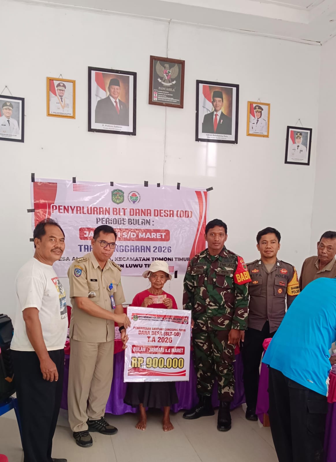 Penyaluran bantuan yang mencakup periode Januari hingga Maret tersebut berlangsung dengan melibatkan berbagai unsur, di antaranya Camat Tomoni Timur, Kepala Desa Alam Buana, Babinsa, Bhabinkamtibmas, Badan Permusyawaratan Desa (BPD), serta warga penerima bantuan.