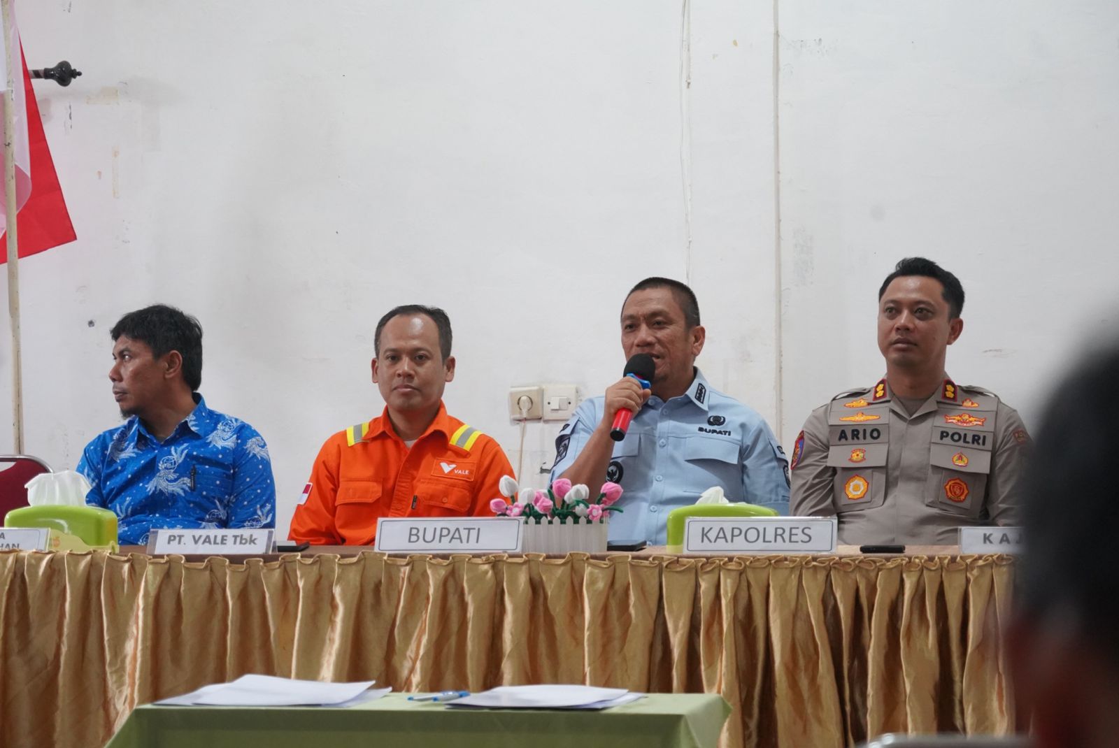 Pertemuan ini turut dihadiri Kapolres Luwu Timur AKBP Ario Putranto T.M., Kasi Intelijen Kejaksaan Negeri Luwu Timur Deri Fuad Rachman, unsur TNI melalui Pabung, Kepala Kantor Pertanahan, Camat Nuha Arief Fadillah Amier, serta perwakilan PT Vale Indonesia Tbk.