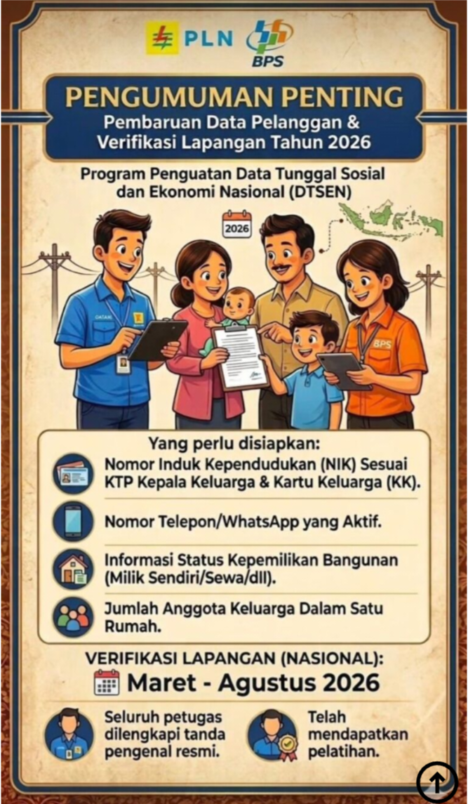Mari kita sukseskan Pembaruan Data Pelanggan & Verifikasi Lapangan Tahun 2026 demi Indonesia yang lebih transparan dan sejahtera!