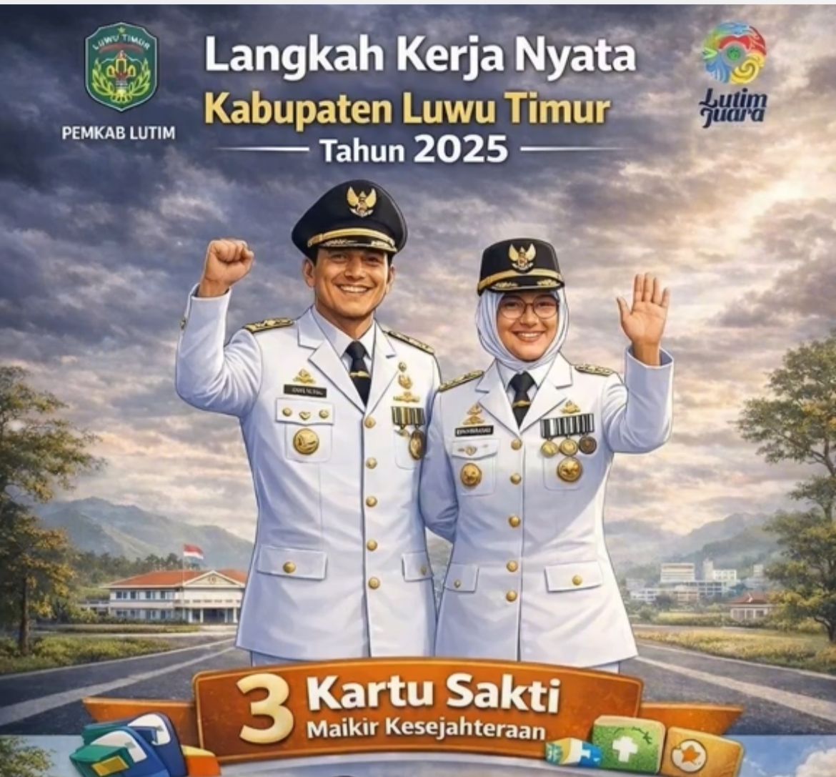 MALILI ,HnmIndonesia.com– Pemerintah Kabupaten Luwu Timur (Lutim) siap menggebrak tahun 2025 dengan terobosan pelayanan publik yang ambisius. Melalui visi besar bertajuk “Lutim Juara”, pasangan Bupati dan Wakil Bupati Luwu Timur mempertegas komitmen mereka melalui konsep Langkah Kerja Nyata. Tak tanggung-tanggung, tiga “Kartu Sakti” disiapkan sebagai senjata utama untuk menyejahterakan warga Bumi Batara Guru.