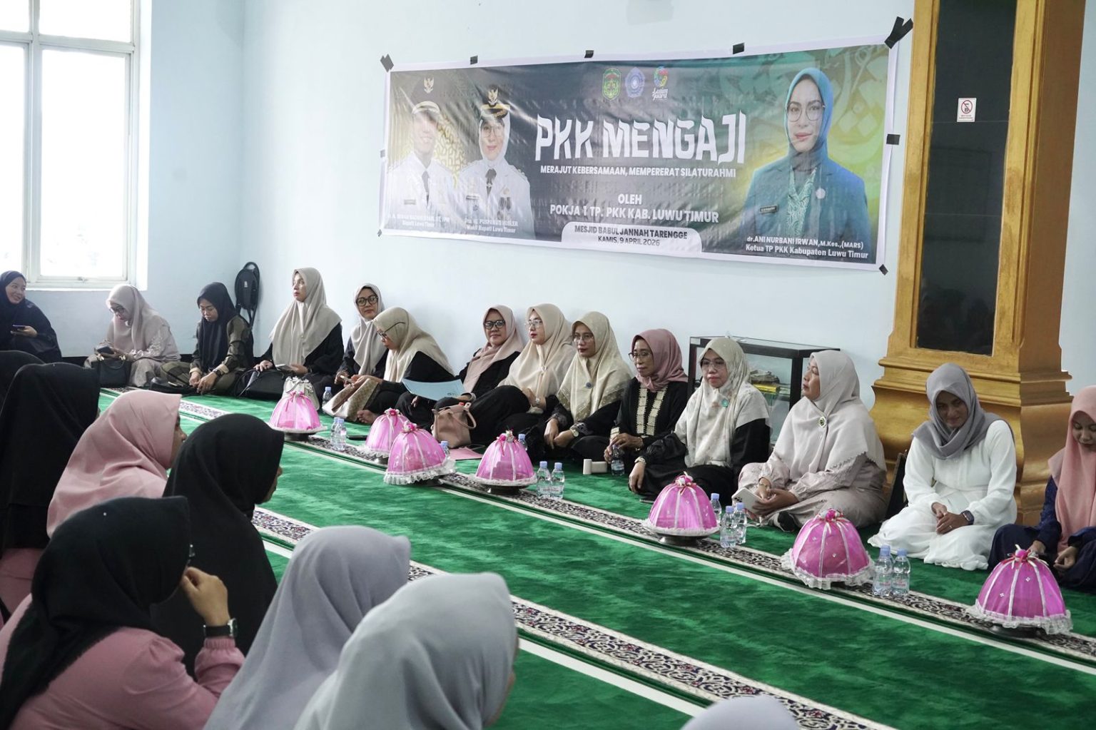 Kegiatan yang dipusatkan di Masjid Babul Jannah Tarengge, Kecamatan Wotu, Kamis (09/04/2026) ini merupakan bagian dari program rutin Pokja I TP PKK yang mengusung nilai-nilai spiritualitas dan kebersamaan dalam bingkai pembinaan karakter keluarga melalui penguatan nilai-nilai keagamaan.