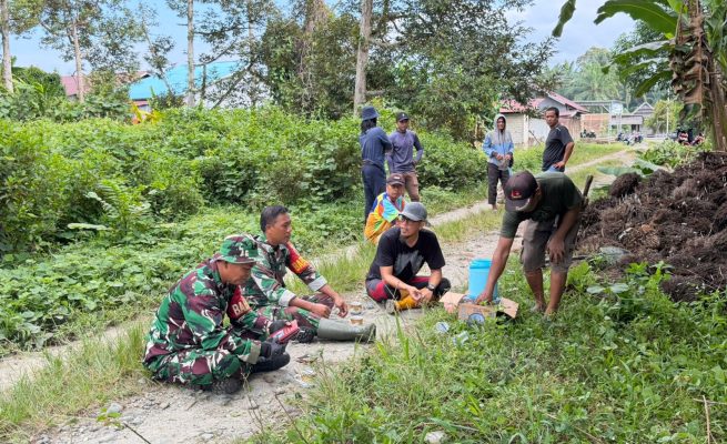 Cegah Banjir, Babinsa Koramil Wotu dan Warga Gotong Royong Bersihkan Saluran Air